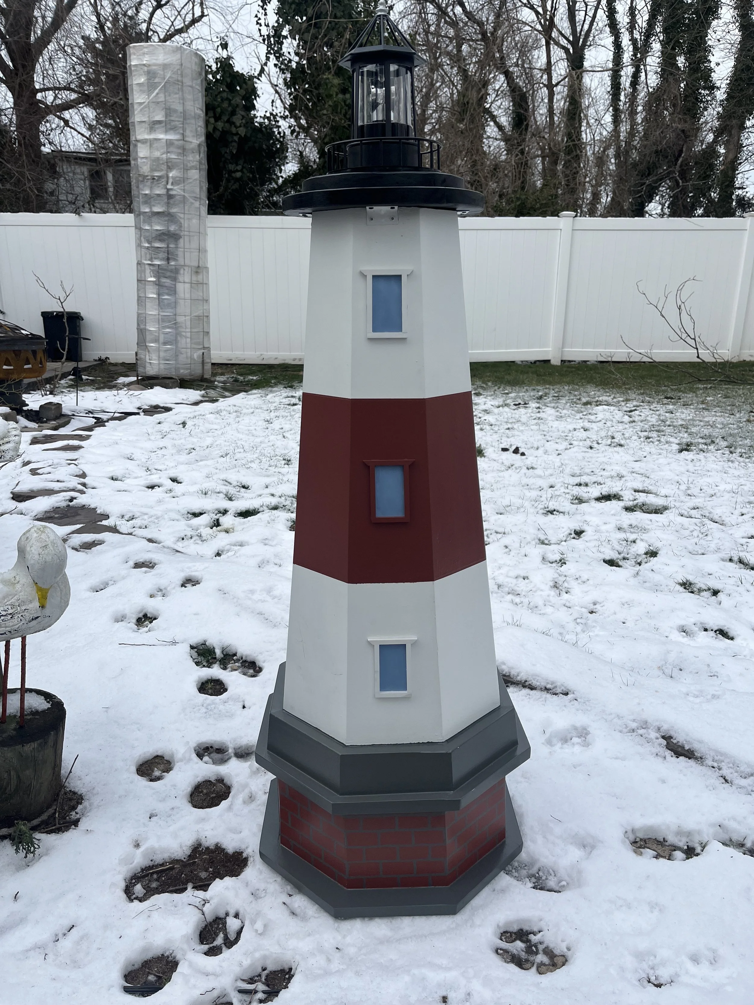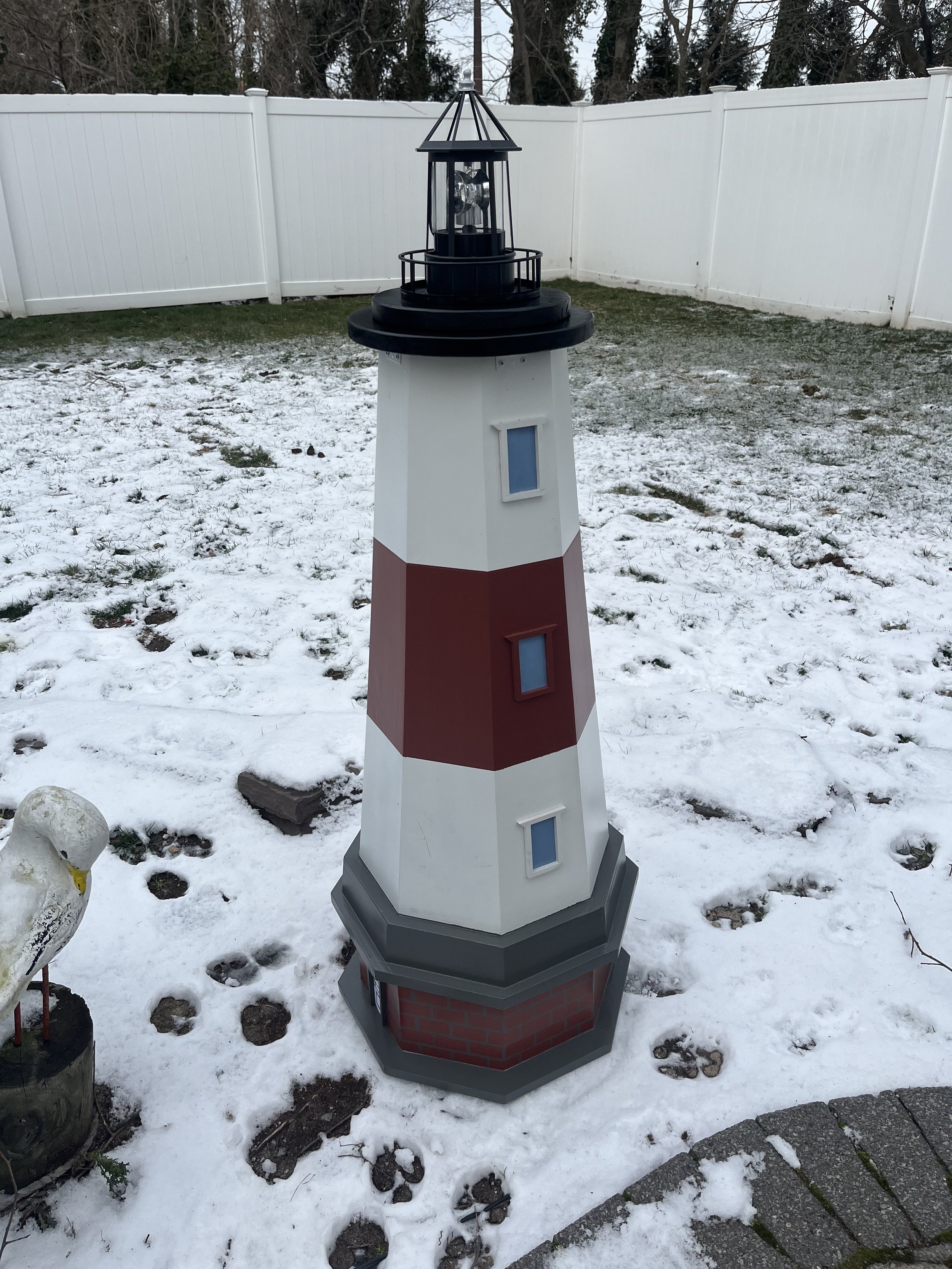This replica of the Montauk Point Lighthouse captures the timeless character of one of America’s most recognizable coastal landmarks. It’s made from treated lumber with an exterior paint finish to help resist weathering. And the greatest feature, a solar powered rotating light to enhance the authenticity of the piece.